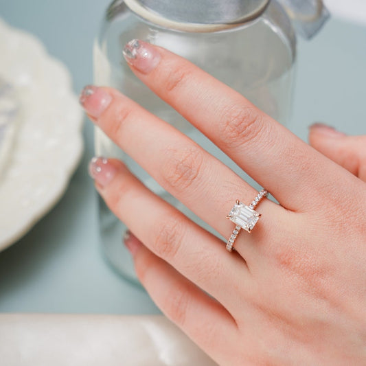 2.0 CT Emerald Hidden Halo Lab Grown Diamond Engagement Ring