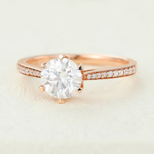 0.68 CT Round Milgrain Pave Lab-Grown Diamond Engagement Ring