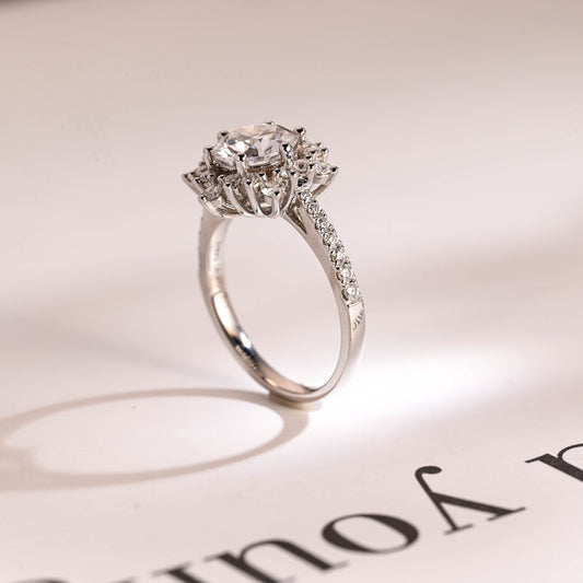 1 CT Round Cluster Lab Grown Diamond Engagement Ring