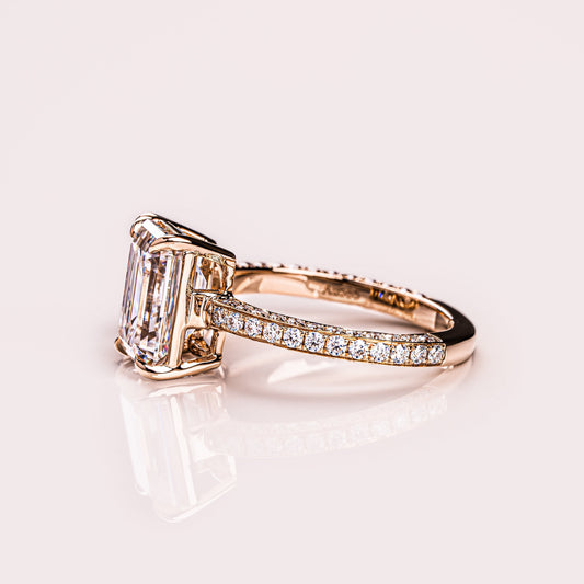 2.25 CT Emerald & Pear Two Stone & Pave Moissanite Engagement Ring